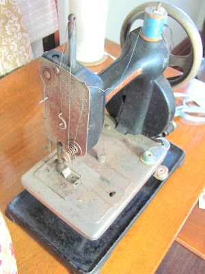 This sewing machine was part of a collection that belonged to my friend's mother. This little machine measures 10" wide by 6" deep and 9 1/2" high.